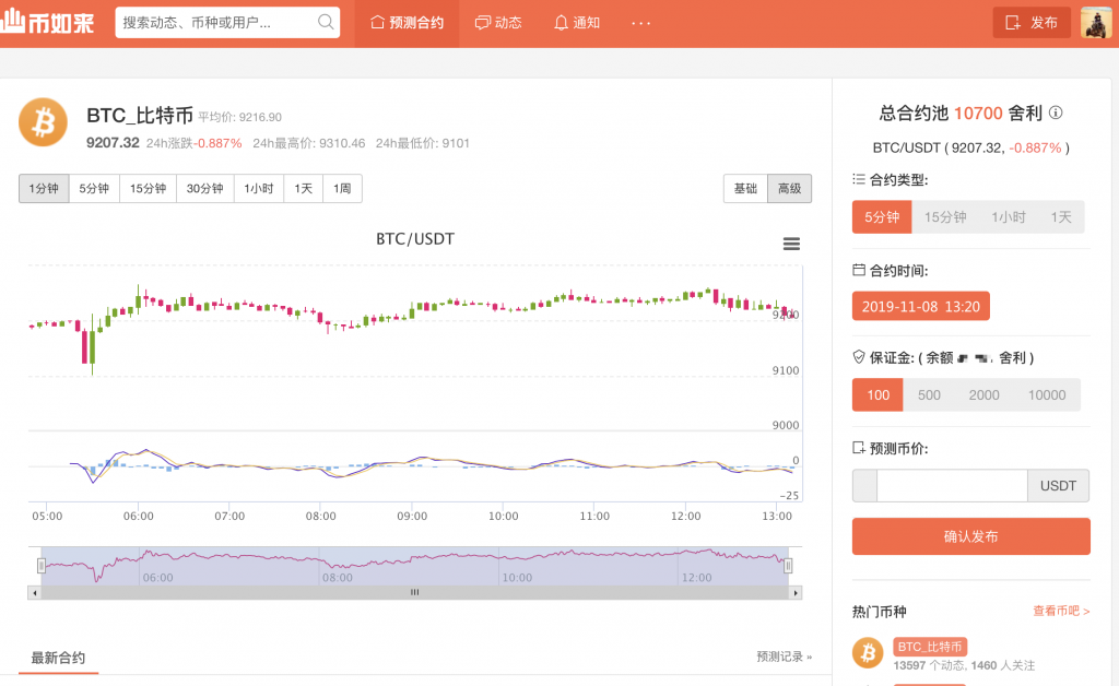 而预测合约将传统的合约进行了创新,完美了的规避了深度问题,只要有2个投资者向相反的方向下单,即可顺利成交,同时5分钟、1小时甚至自定义的交割时间,即便在行情波动不大的时候,也能获得较大收益,并能规避传统合约中,预测对了价格,却无法将盈利单持有到最大化的弊端。